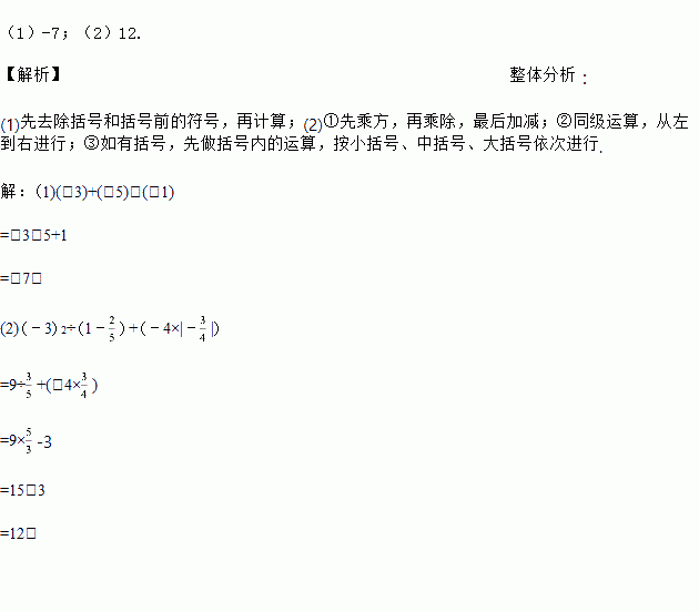 (1)(﹣3)+(﹣5)﹣(﹣1)