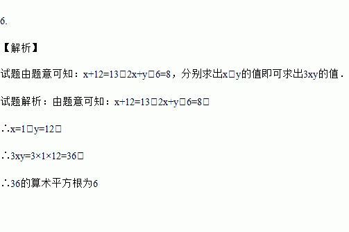 已知x+12平方根是±,2x+y﹣6的立方根是2,求3xy的算术平方根.
