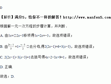 C. 由2(2x﹣1)﹣3(x﹣3)=1,去括号得4x﹣2﹣3x﹣9=1