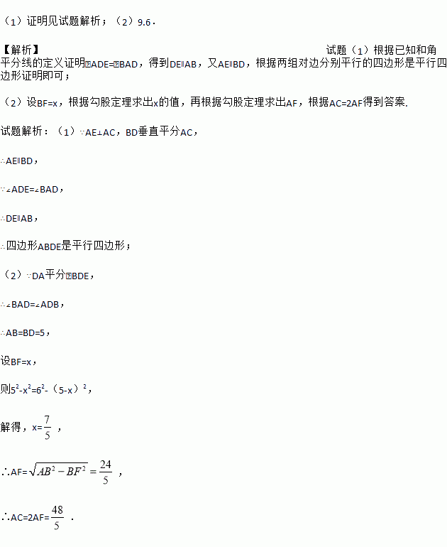 (2)如果DA平分∠BDE,AB=5,AD=6,求AC的长.