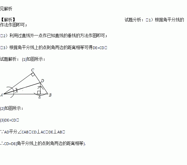 (2)在(1)的基础上作出点D到AB的垂线段DE;