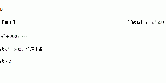 A. |a+1| B. a2 C. (a+2007)2 D. a2+2007