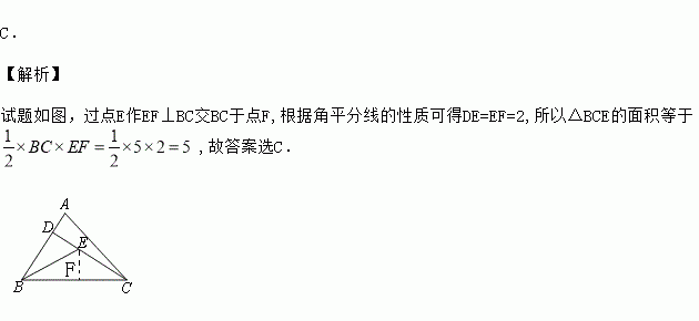 如图,已知在△ABC中,CD是AB边上的高线,BE平分∠ABC,交CD于点E,BC=5,DE=2,则△BCE的面积等于( )