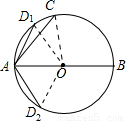 【答案】分析:用圆规以A点为圆心,AO为半径画弧,弧与圆的交点就D,这样的点有两个.连接BC,则∠ACB=90°,利用直角三角形的角边关系可得∠CAB余弦值,进而求得∠CAB的度数,同理可得∠DAB的度数,那么就求得∠CAD的度数.