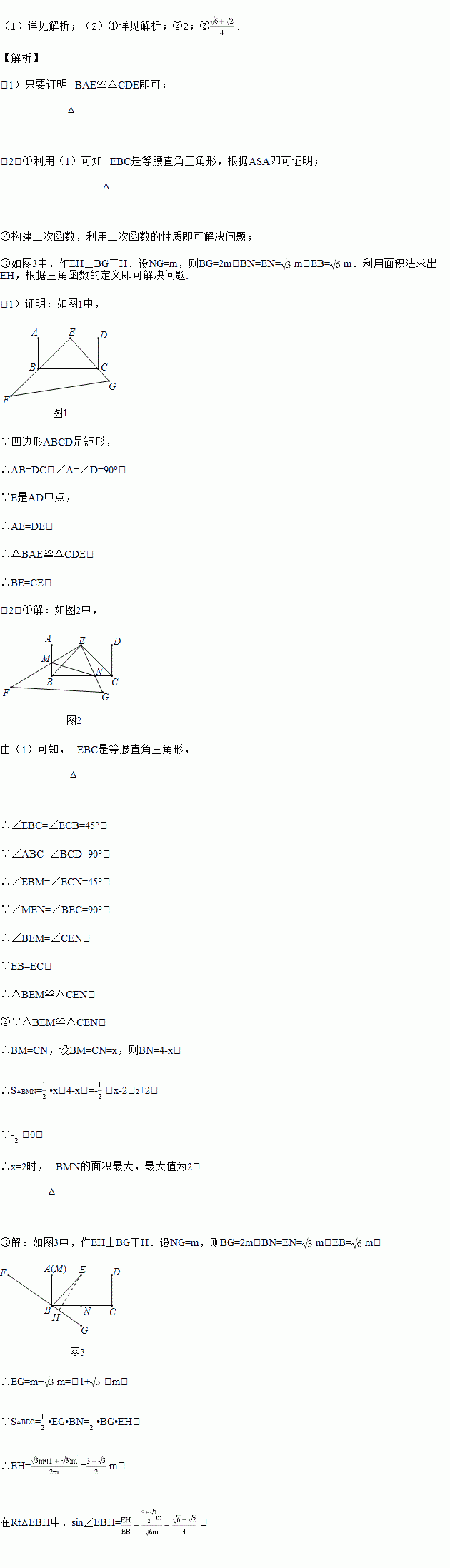 (2)将△EFG绕点E按顺时针方向旋转,当旋转到EF与AD重合时停止转动.若EF,EG分别与AB,BC相交于点M,N.(如图2)