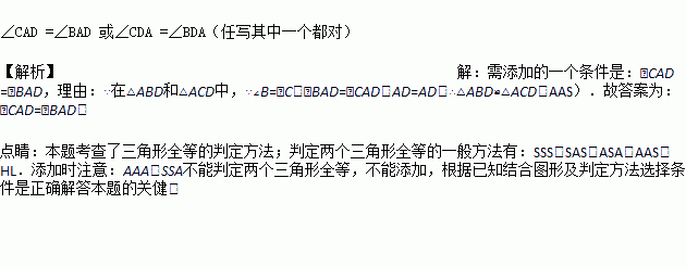 如图所示,∠B∠C,要使△ABD≌△ACD,需添加的一个条件是_______.(只添一个条件即可)