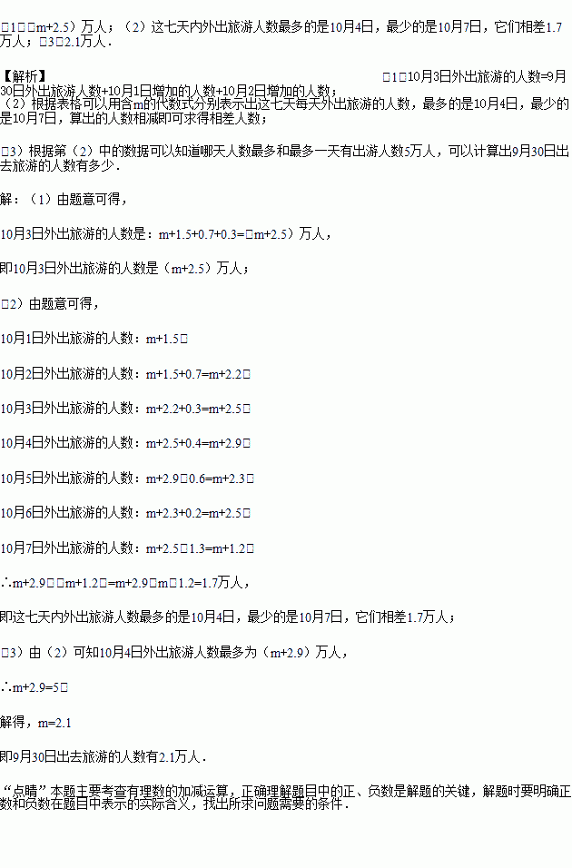(1)若9月30日外出旅游人数记为m,请用含m的代数式表示10月3日外出旅游的人数.