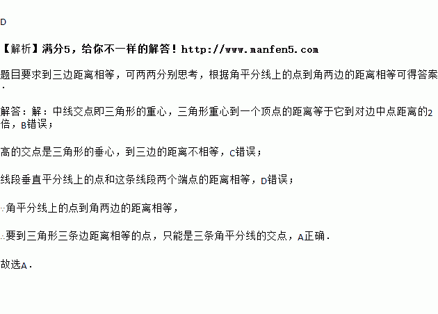 C. 三边上的高所在直线交点 D. 三边垂直平分线的交点