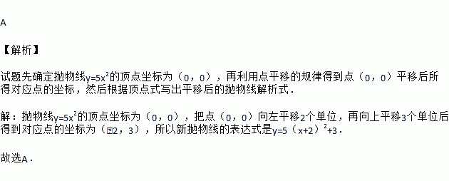 将抛物线 y=5x2先向左平移2个单位,再向上平移3个单位后得到新的抛物线,则新抛物线的表达式是( )