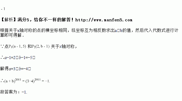 在平面直角坐标系中,已知点和关于轴对称,则的值为________.