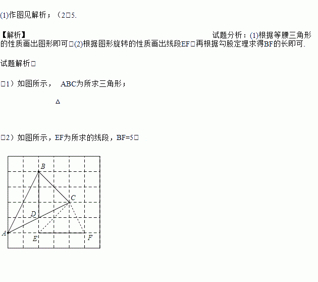 (2)在方格纸中画出△ABC的中线BD,并把线段BD绕点C逆时针旋转90°,画出旋转后的线段EF(B与E对应,D与F对应),连接BF,请直接写出BF的长.
