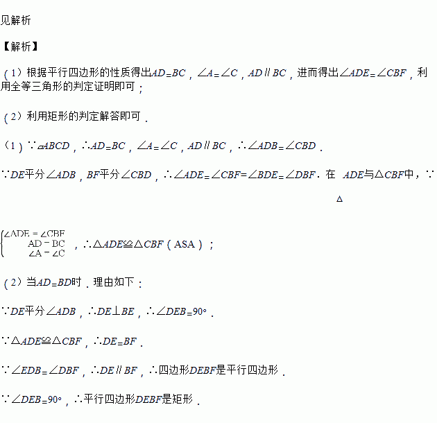 (2)当AD与BD满足什么关系时,四边形DEBF是矩形?请说明理由.