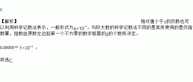叶绿体是植物进行光合作用的场所,叶绿体DNA最早发现于衣藻叶绿体,长约0.00005米.其中,0.00005用科学记数法表示为( )