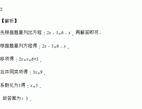 当x=_____时,代数式2x﹣3与代数式6﹣x的值相等.