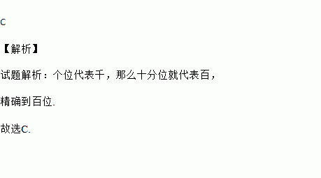 A. 精确到十分位 B. 精确到个位 C. 精确到百位 D. 精确到千位