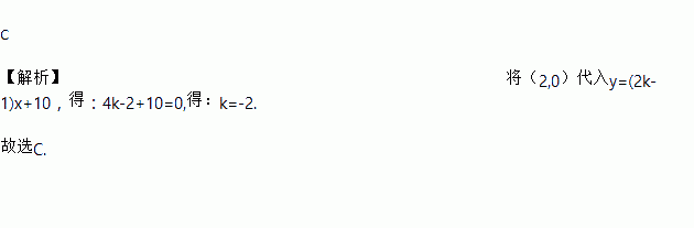 若方程x-2=0的解也是直线y=(2k-1)x+10与x轴的交点的横坐标,则k的值为( )