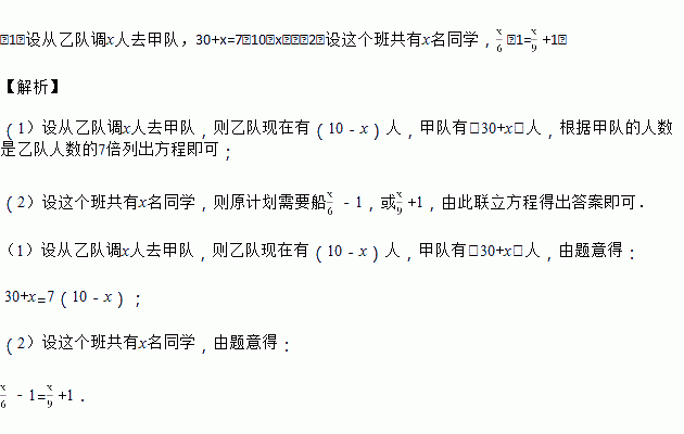 (1)有两个工程队,甲队人数30名,乙队人数10名,问怎样调整两队的人数,才能使甲队的人数是乙队人数的7倍.