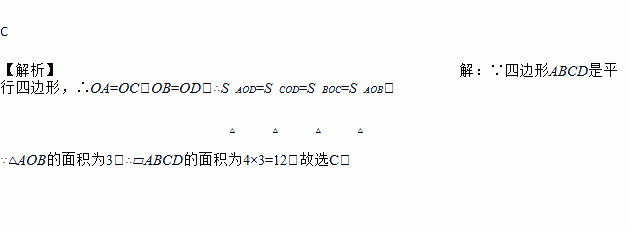 在?ABCD中,对角线AC,BD相交于点O,若△AOB的面积为3,则?ABCD的面积为( )