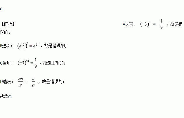 A. 3-1 = - 3 B. 3-3= - 9 C. 3-2 = D. 30 = 0