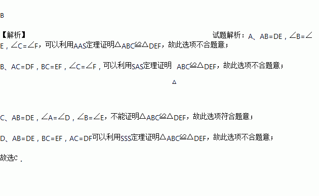 C. AB=DE,∠A=∠D,∠B=∠F D. AB=DE,BC=EF,AC=DF