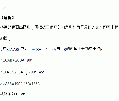 在Rt△ABC中,∠ACB=90°,∠A与∠B的内角平分线交于点F,则∠AFB的度数是_____.