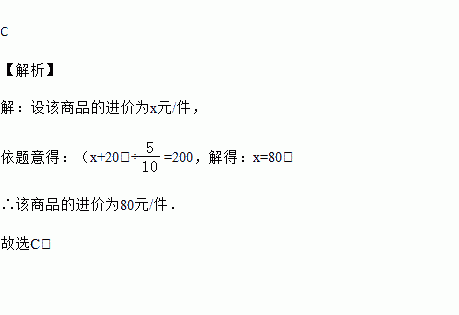 互联网“微商”经营已成为大众创业新途径,某微信平台上一件商品标价为200元,按标价的五折销售,仍可获利20元,则这件商品的进价为( )