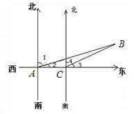 答:飞机现在应从北偏东飞行68°才可能到达B地.