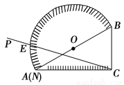如图,量角器的直径与直角三角板ABC的斜边AB重合,其中量角器0刻度线的端点N与点A重合,射线CP从CA处出发沿顺时针方向以每秒2度的速度旋转,CP与量角器的半圆弧交于点E,第35秒时,点E在量角器上对应的读数是________度.