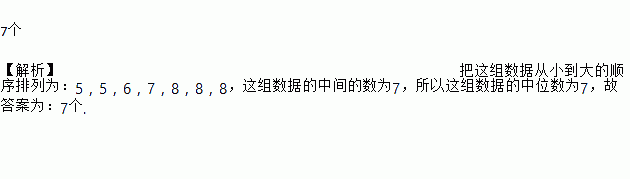 某篮球兴趣小组7名学生参加投篮比赛,每人投10个,投中的个数分别为:8,5,7,5,8,6,8,则这组数据的中位数为 .