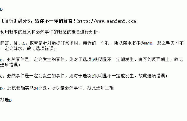 B. 任意掷一枚均匀的1元硬币,一定是正面朝上
