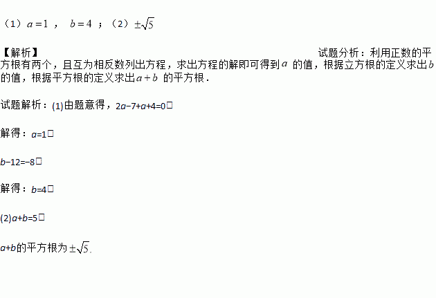 (2)求a+b的平方根.