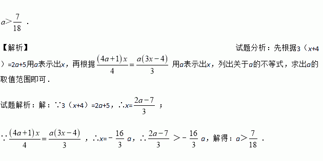 若关于x的方程3(x+4)=2a+5的解大于关于x的方程的解,求a的取值范围.
