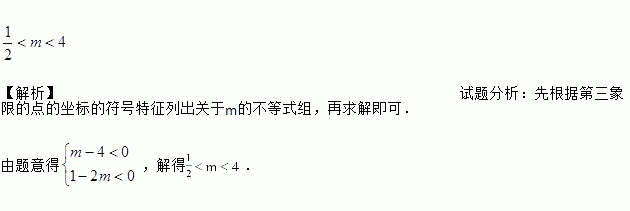 若点(m-4,1-2m)在第三象限内,则m的取值范围是__________.