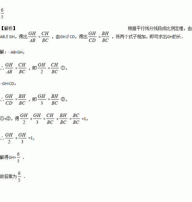 如图,AB∥GH∥CD,点H在BC上,AC与BD交于点G,AB=2,CD=3,则GH的长为 .