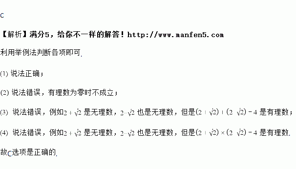 一个无理数与一个有理数的和是无理数一个无理数与一个有理数的积是无理数两个无理数和是无理数两个无理数积是无理数.