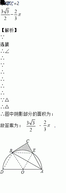 如图,以AD为直径的半圆O经过Rt△ABC的斜边AB的两个端点,交直角边AC于点E.B、E是半圆弧的三等分点,若OA=2,则图中阴影部分的面积为_____.