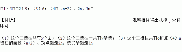 (4)通过对棱柱的观察,请你说出n棱柱的面数、顶点数及棱的条数.