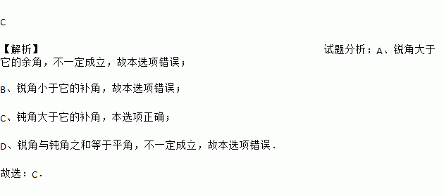 A. 锐角大于它的余角 B. 锐角大于它的补角