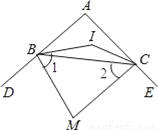 如图,△ABC中,∠A=100°,BI、CI分别平分∠ABC,∠ACB,则∠BIC=__,若BM、CM分别平分∠ABC,∠ACB的外角平分线,则∠M=__.