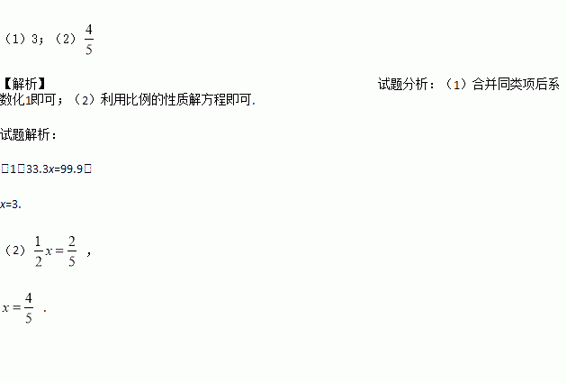(1)22.3x+11x=99.9 (2) ∶4=∶x