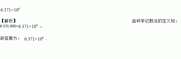 地球的平均半径为6 371 000m.数6 371 000用科学记数法表示为____.