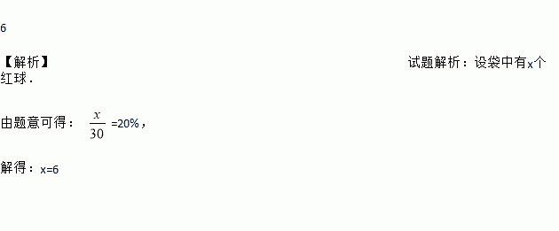 一只不透明的袋子中装有红球和白球共30个,这些球除了颜色外都相同,校课外学习小组做摸球试验,将球搅匀后任意摸出一个球,记下颜色后放回、搅匀,通过多次重复试验,算得摸到红球的频率是20%,则袋中有_____个红球.