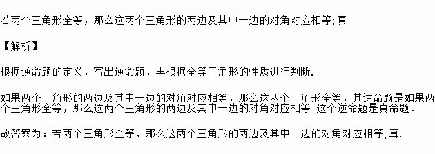 如果两个三角形的两边及其中一边的对角对应相等,那么这两个三角形全等,其逆命题是_______________________,这个逆命题是________命题.