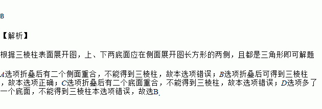 如图是一个三棱柱,下列图形中,能通过折叠围成一个三棱柱的是( )