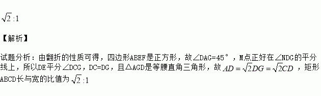 СÃ÷³¢ÊÔ׎«¾ØÐÎֽƬABCD£¨Èçͼ¢Ù£¬AD>CD£©ÑعýAµãµÄÖ±ÏßÕÛµþ£¬Ê¹µÃBµãÂäÔÚAD±ßÉϵĵãF´¦£¬ÕÛºÛΪAE£¨Èçͼ¢Ú£©£»ÔÙÑØ¹ýDµãµÄÖ±ÏßÕÛµþ£¬Ê¹µÃCµãÂäÔÚDA±ßÉϵĵãN´¦£¬EµãÂäÔÚAE±ßÉϵĵãM´¦£¬ÕÛºÛΪDG£¨Èçͼ¢Û£©£®Èç¹ûµÚ¶þ´ÎÕÛµþºó£¬MµãÕýºÃÔÚ¡ÏNDGµÄƽ·ÖÏßÉÏ£¬ÄÇô¾ØÐÎABCD³¤Óë¿íµÄ±ÈֵΪ £®