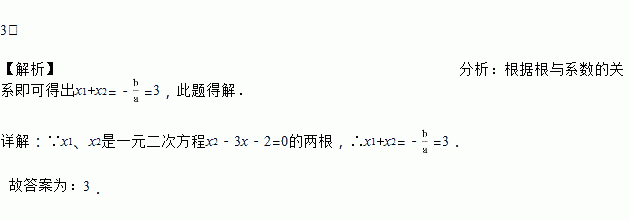 已知x1、x2是一元二次方程x2﹣3x﹣2=0的两根,则x1+x2=_____.