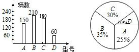 、C、D四种型号的销售做了统计,绘制成如下两幅统计图(均不完整)