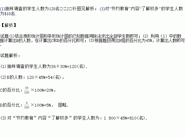 (3)若该中学共有1 800名学生,请你估计这所中学的所有学生中,对“节约教育”内容“了解较多”的有多少名?
