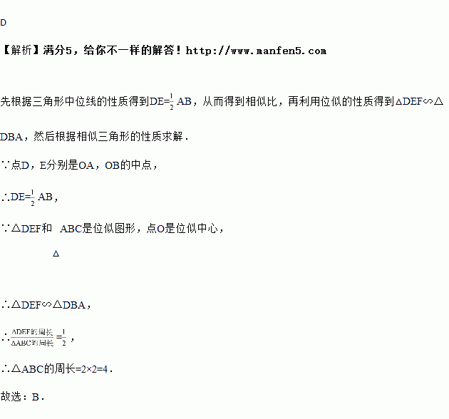△DEF和△ABC是位似图形,点O是位似中心,点D,E,F分别是OA,OB,OC的中点,若△DEF的面积是2,则△ABC的面积是( )