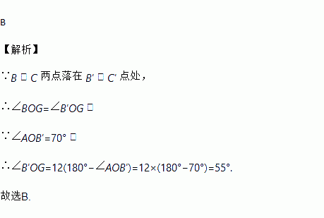 如图,把一张长方形的纸按如图所示那样折叠,B、C两点分别落在B′,C′点处,若∠AOB′=70°,则∠B′OG的度数为( )